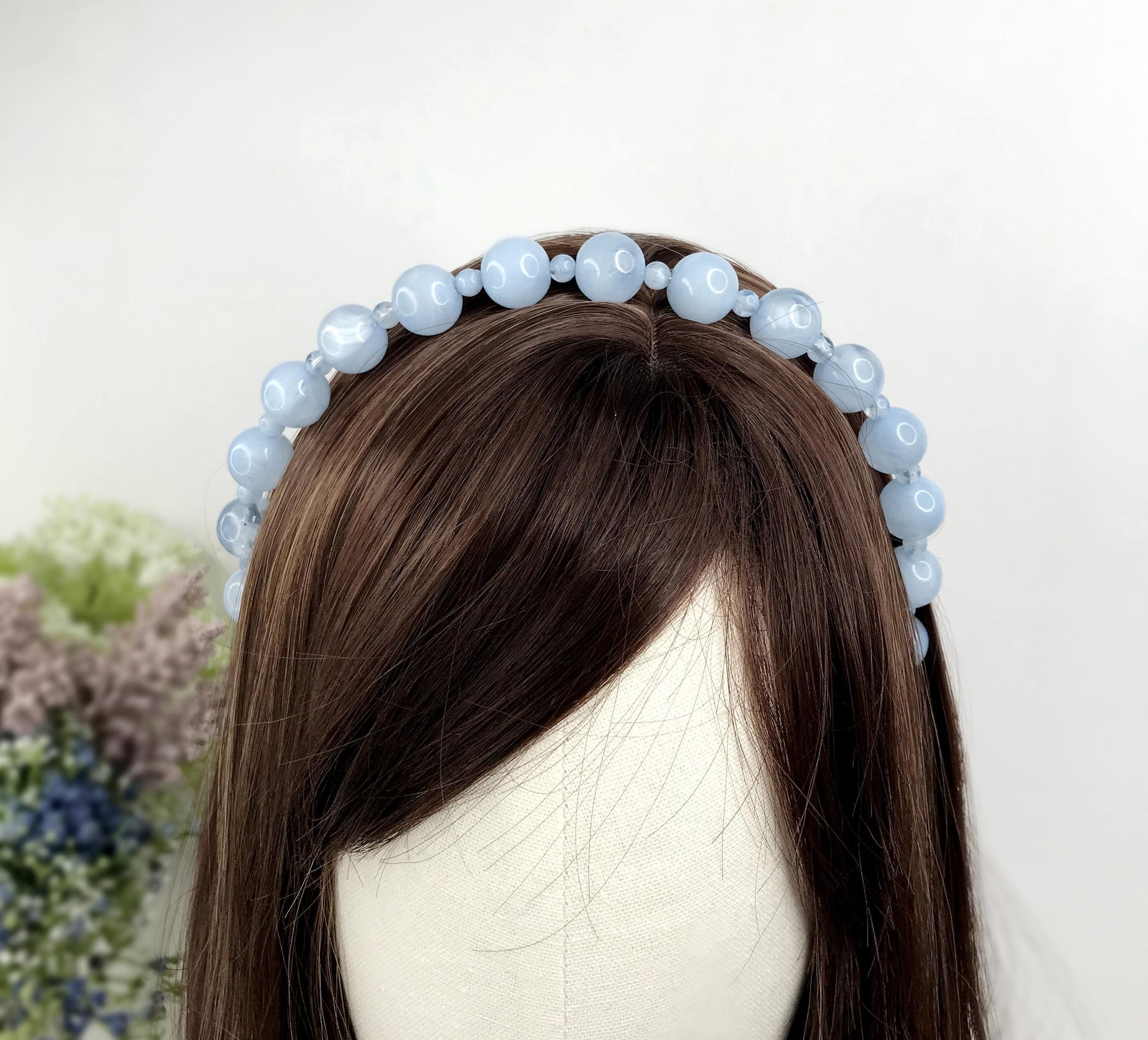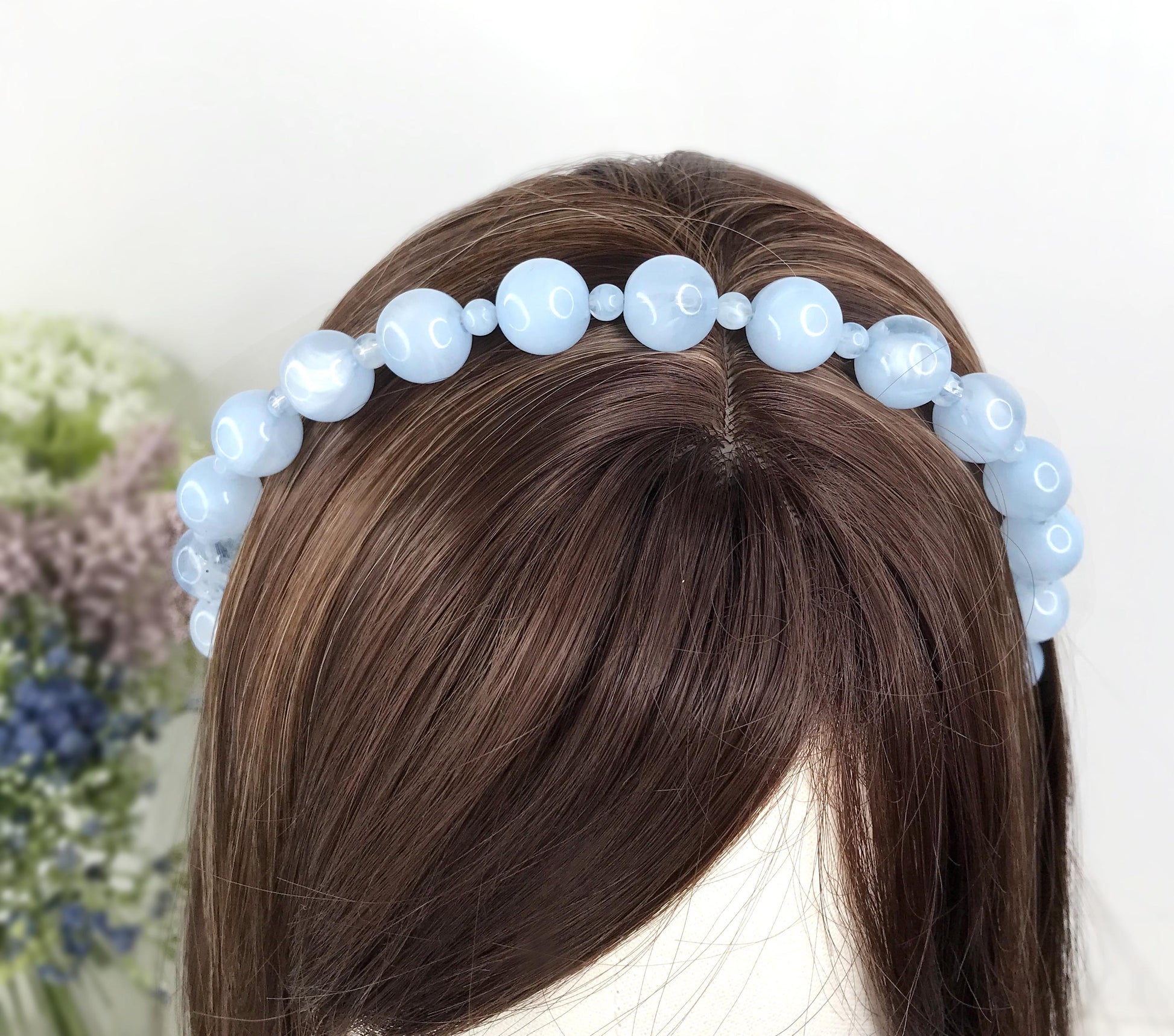 Handmade Powder Blue Round Circle Marble Effect Resin Beads Statement Headband